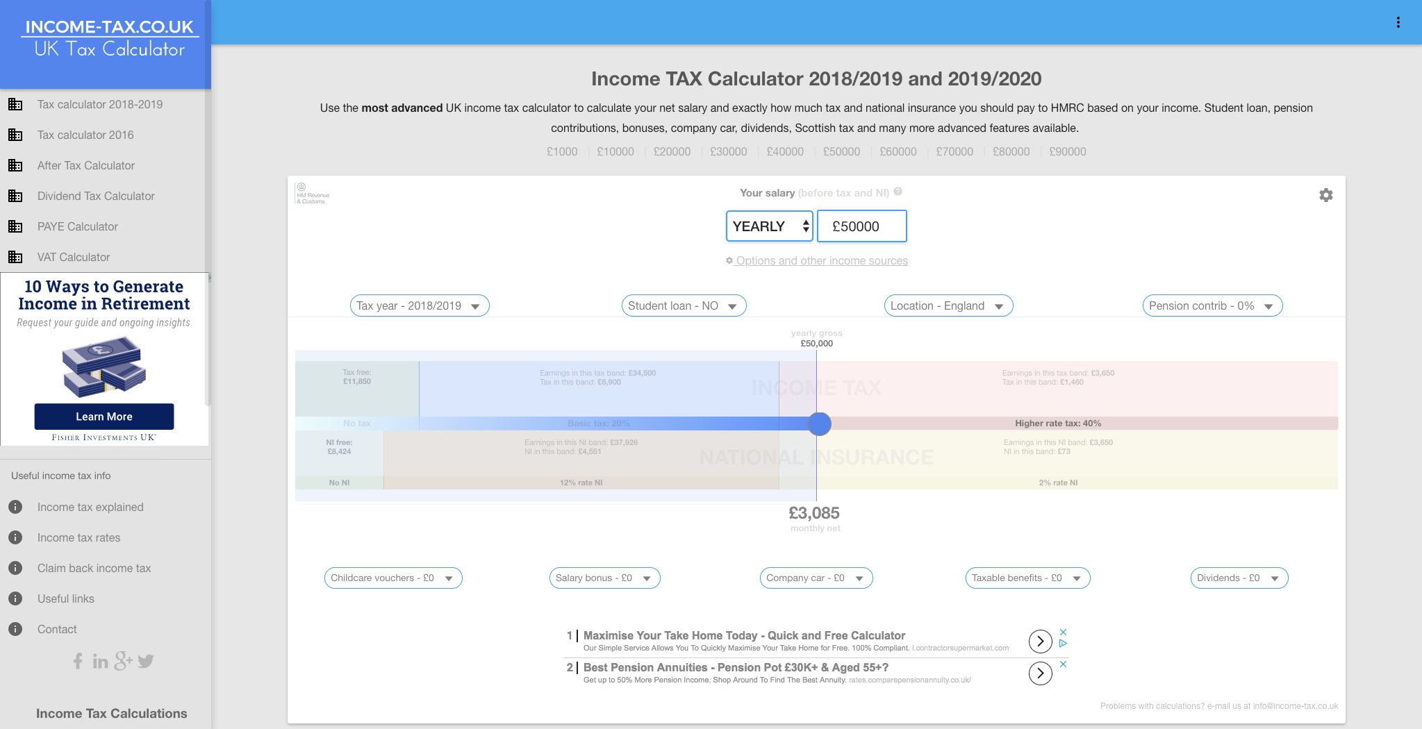 Income Tax Calculator Income Tax Calculator is quick and easy to use. A sixth of side hustles are earning around 400 monthly. UK Tax Salary Calculator Calculate your net salary and find out exactly how much tax and national insurance you should pay to HMRC based on your income.
